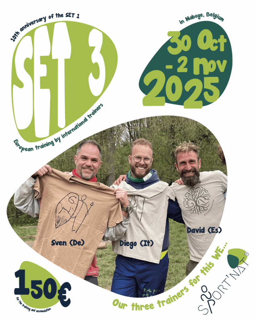 Ces 30 et 31 octobre, 1er et 2 novembre 2025, nous fêterons le dixième anniversaire du Sport’nat European Training 1 (SET1), une formation que nous avons donnée, en anglais, à de jeunes curieux.se.s venu.e.s de partout en Europe. Dix ans plus tard, ce sont trois d’entre elleux qui viennent à leur tour nous faire part de leur expérience en hébertisme et des savants mélanges qu’ils ont opéré avec leurs autres influences, lors du SET 3. La formation sera à nouveau donnée en anglais, comme cela a été le cas aussi lors du SET 2, un de nos MSIn traduit tout exprès, à l’automne 2023.